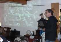 so viele Geschäfte, die es in Ketsch früher gab, lud man am 18. Januar 2018 zu Teil II, der die alten Geschäfte in der Schulstraße beinhaltet hat. Peter Scholz dazu nicht nur Bidlmaterial dabei, sondern auch so manche Anekdote, die vom Publikum kommentiert, korrigiert bzw. ausgeweitet wurde - es gab viel zu erzählen! Es